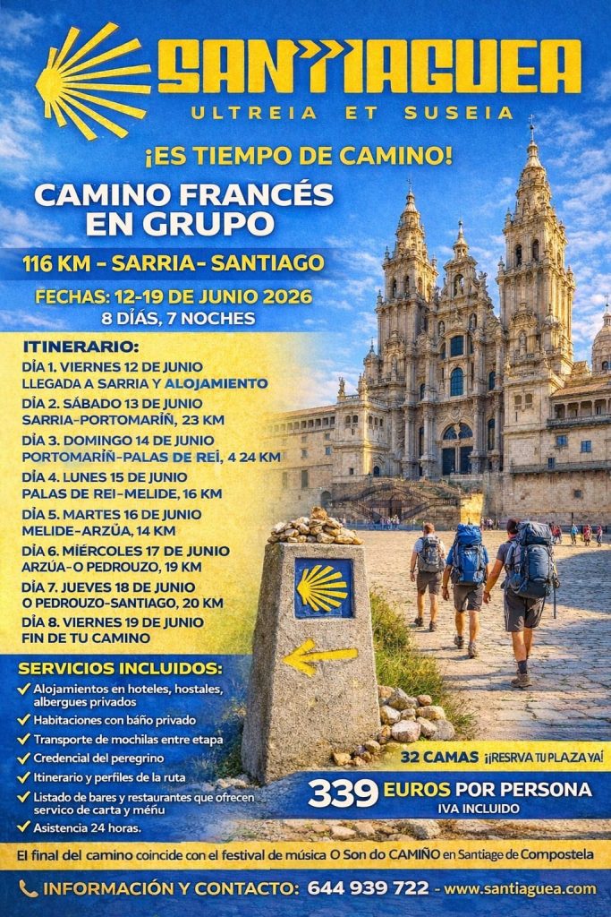 8 días recorriendo los últimos 116 kilómetros del Camino Francés, desde Sarria hasta la Catedral de Santiago de Compostela.